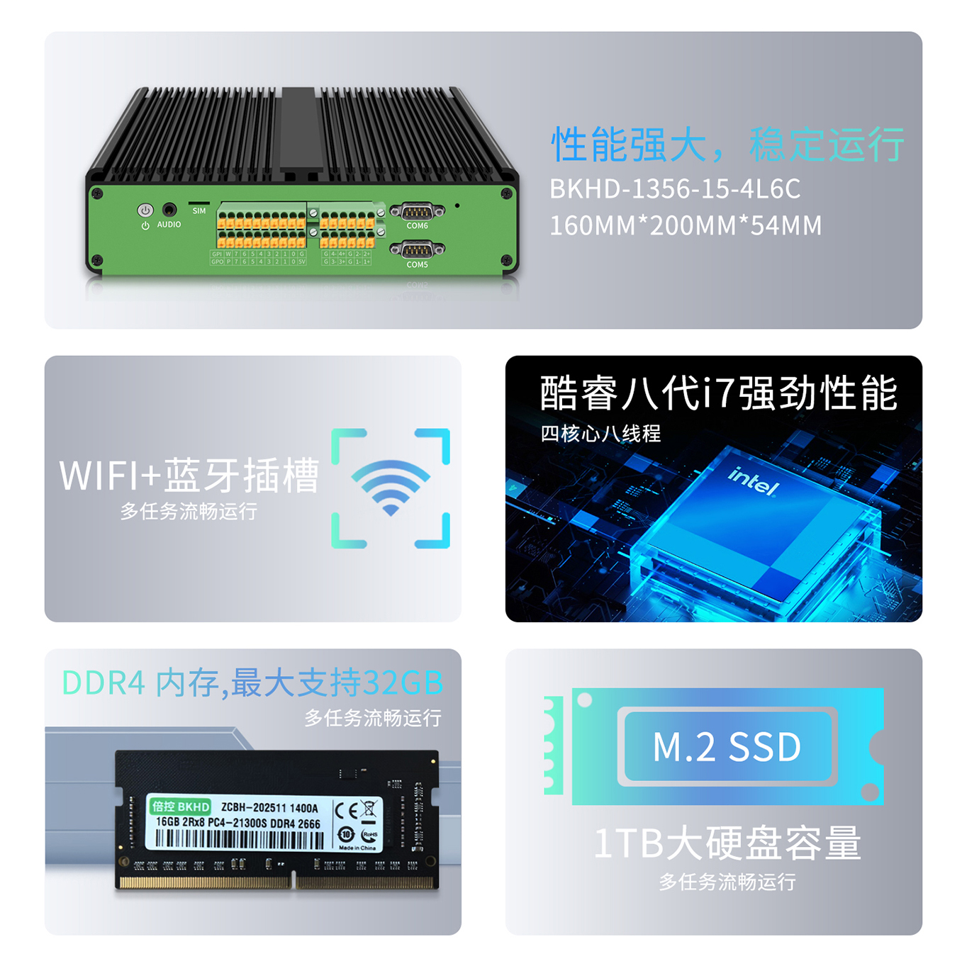 倍控i7-8550工控机 i3-7100u 四网卡i210电脑主机 电力网关6路rs485串口视觉检测ethercat协议5G网关4G